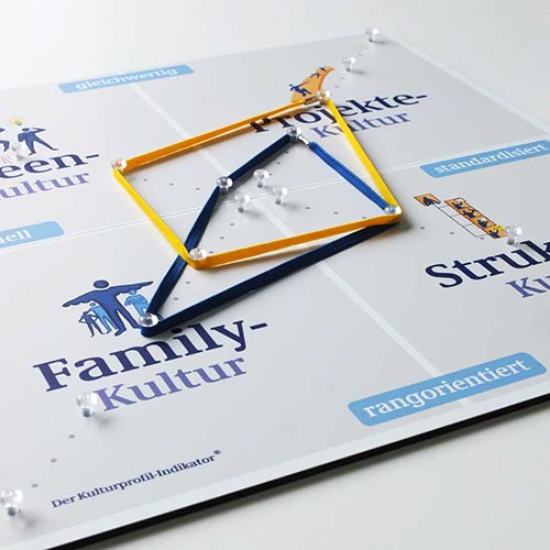 Mit dem Kulturprofil-Indikator® (KPI®) lassen sich Ausprägungen von Aspekten der Unternehmenskultur verdeutlichen. Was vorher schwammig, diffus und ungreifbar war wird im moderierten Dialog in Klein-Gruppen sichtbar, besprechbar und somit anpassbar. Über den „spielerischen“ Zugang des KPI® entstehen verbindliche Vereinbarungen mit Tragweite.